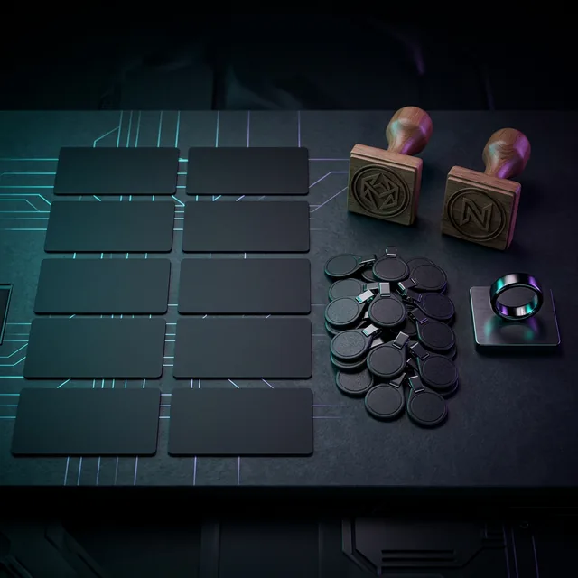 10 NFC cards, 50 clip-on tags, 2 custom stamps, 1 NFC ring, and advanced analytics. Included free with Web App, Mobile App, and E-Commerce projects.